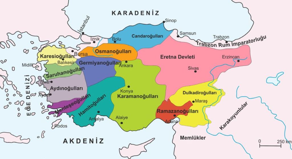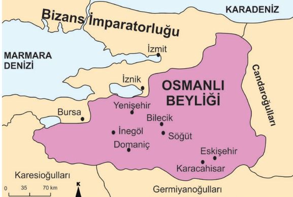 Beylik döneminde Osmanlı, Bizans İmparatorluğu’nun sınırlarında küçük bir uç beyliği olarak bulunuyordu. Bu dönemde Osmanlılar, fetih politikalarıyla Bizans topraklarını ele geçirip Anadolu’daki diğer beyliklere karşı üstünlük sağladılar. Harita üzerinde bu fetihlerin nerede gerçekleştiğini göstermek, Osmanlı Beyliği’nin coğrafi genişlemesini ve Batı Anadolu’da nasıl etkili bir güç haline geldiğini açıklamak açısından faydalı olur.